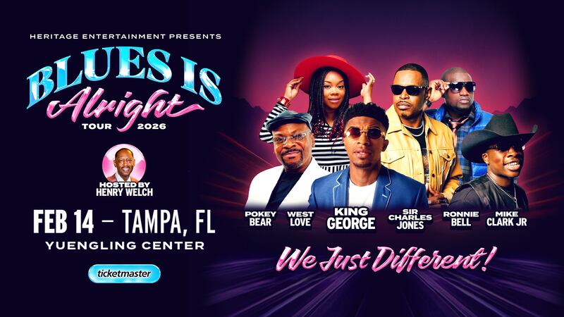 King George, Sir Charles Jones, West Love, Pokey Bear, Ronnie Bell, and Mike Clark Jr. are bringing The Blues Is Alright Tour to Yuengling Center on Saturday, February 14! Be the first to grab your seats for an unforgettable Valentine’s Day experience of Southern Soul and Blues!