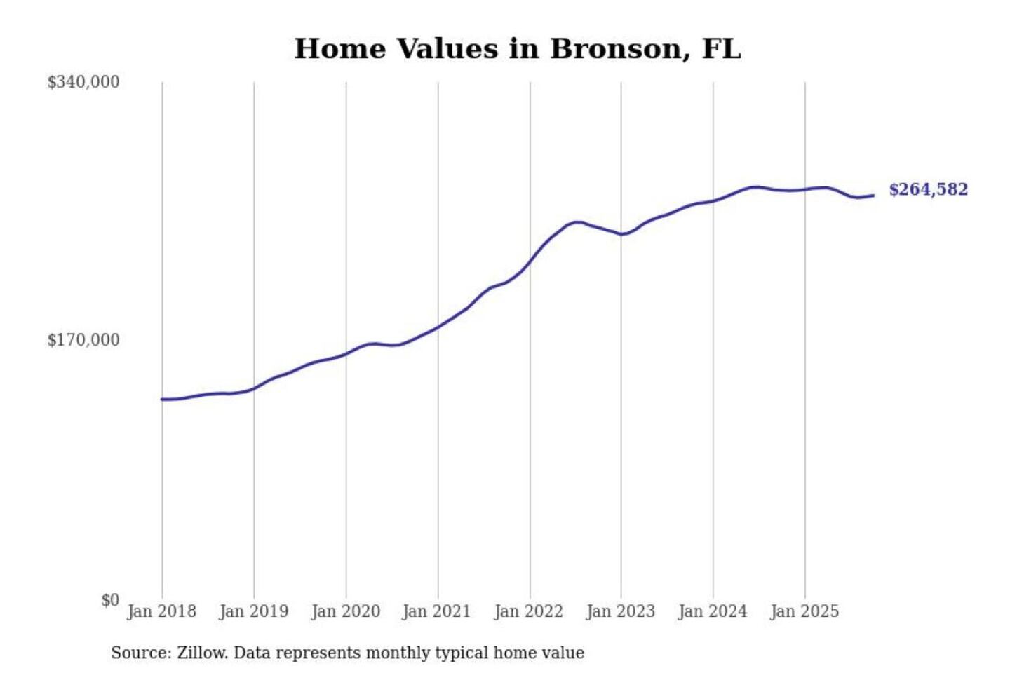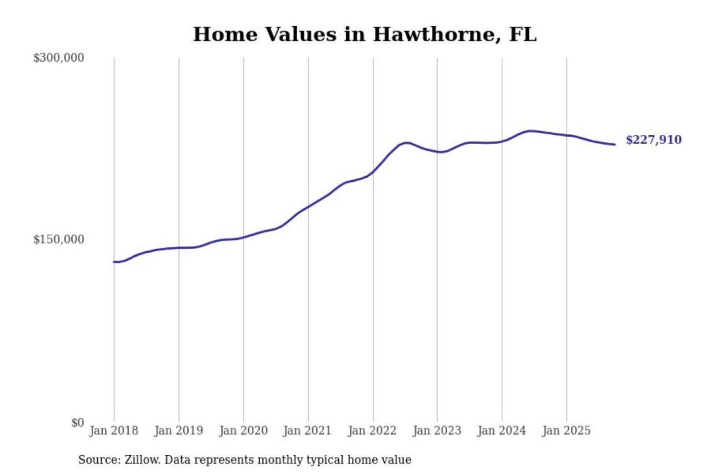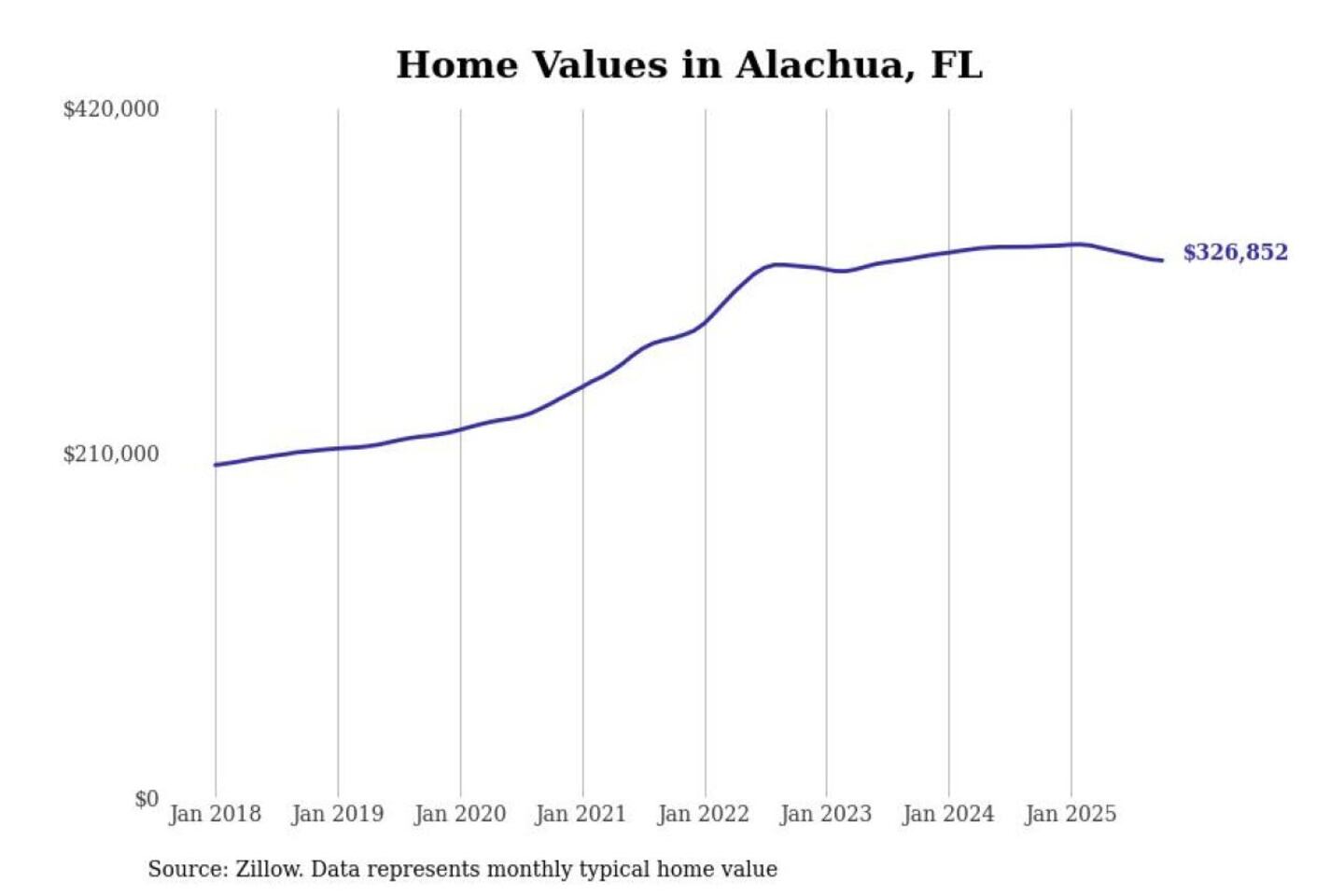 Stacker compiled a list of cities with the most expensive homes in the Gainesville, FL metro area using data from Zillow. Charts show the monthly typical home value since January 2018.