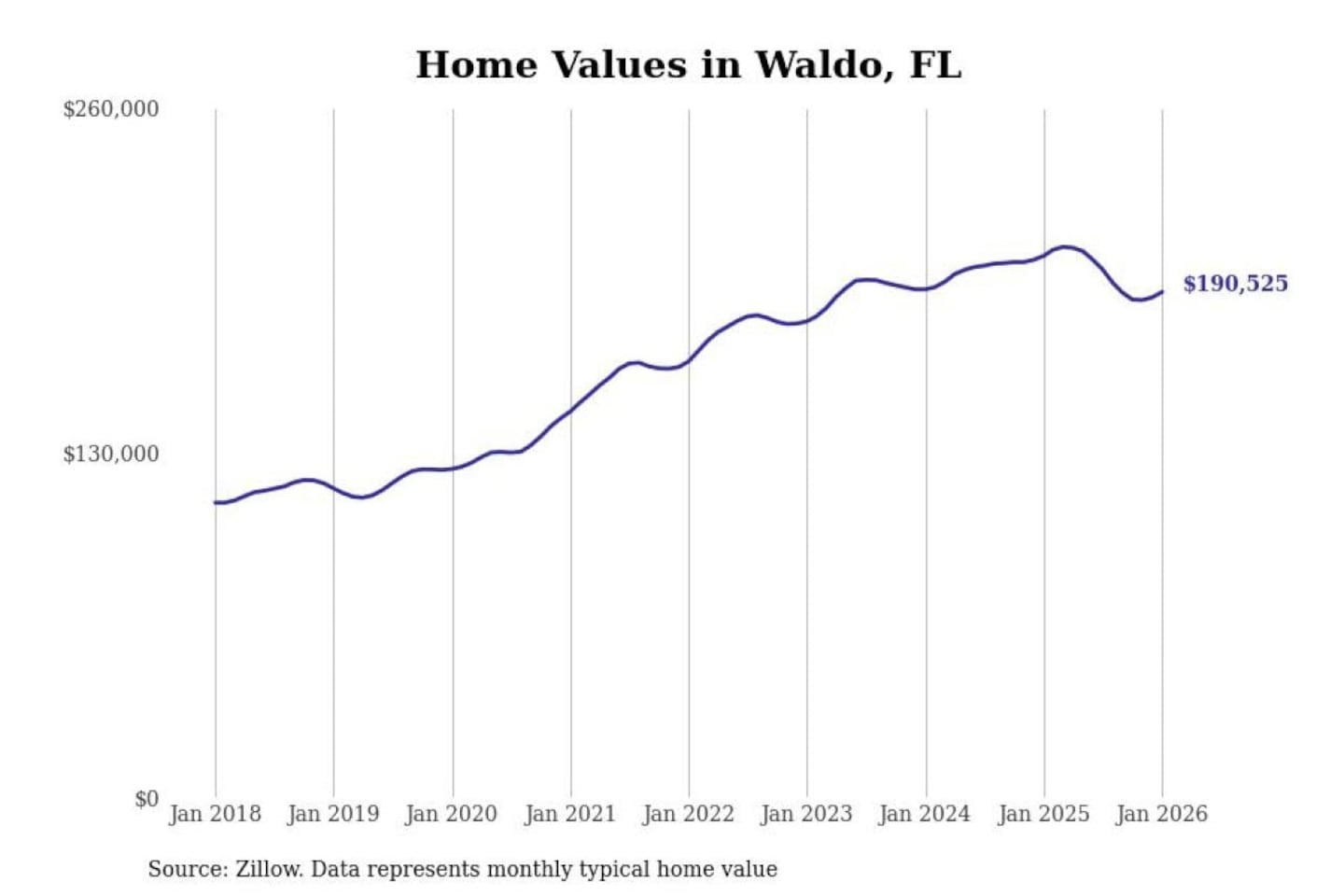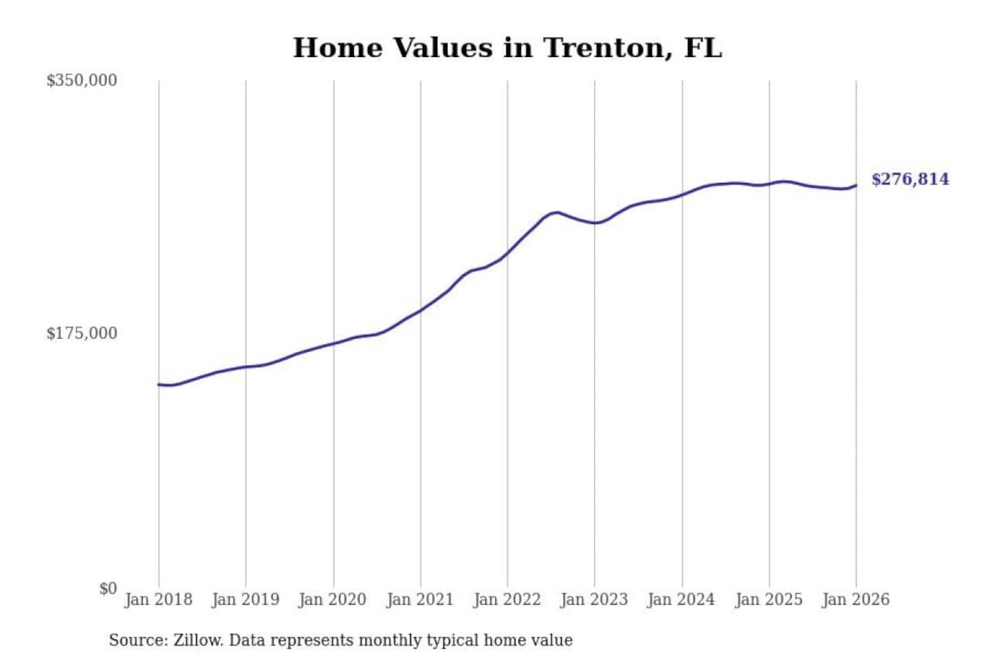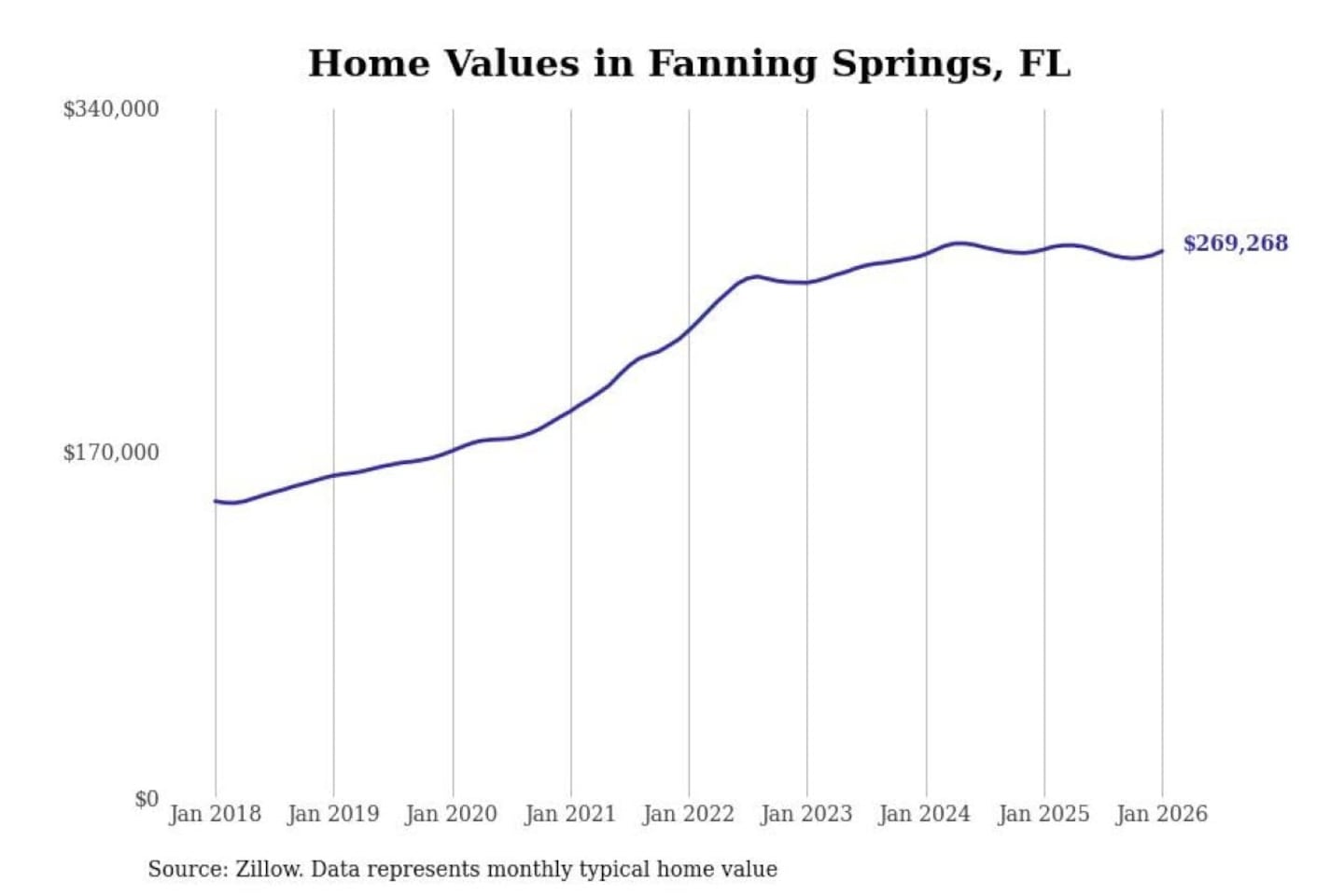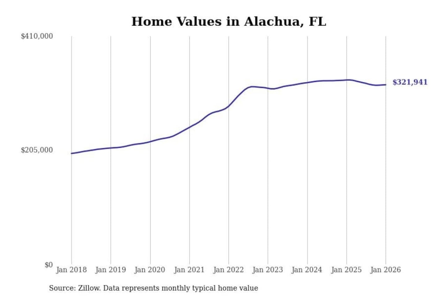 Stacker compiled a list of cities with the most expensive homes in the Gainesville, FL metro area using data from Zillow. Charts show the monthly typical home value since January 2018.