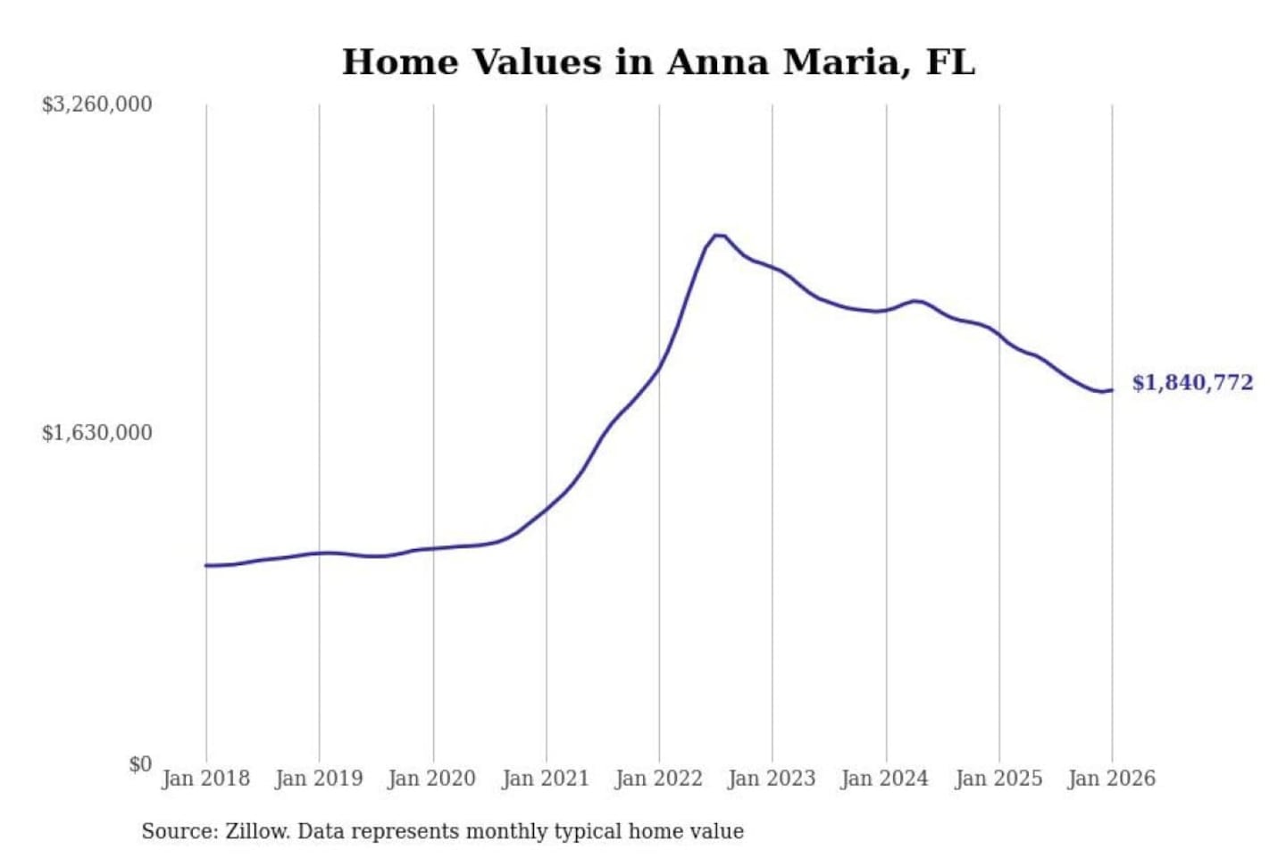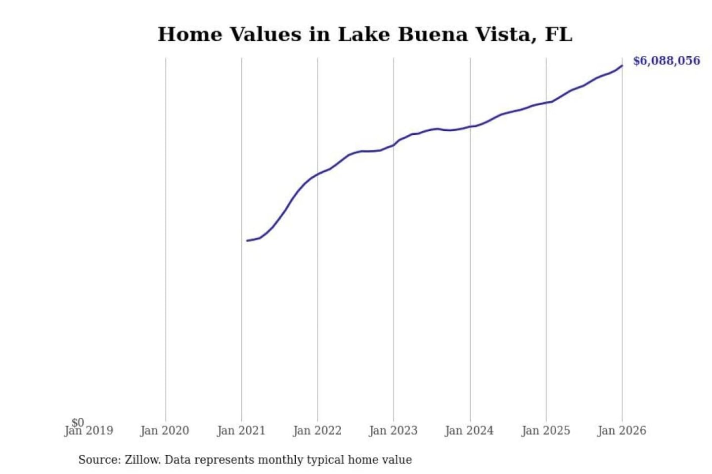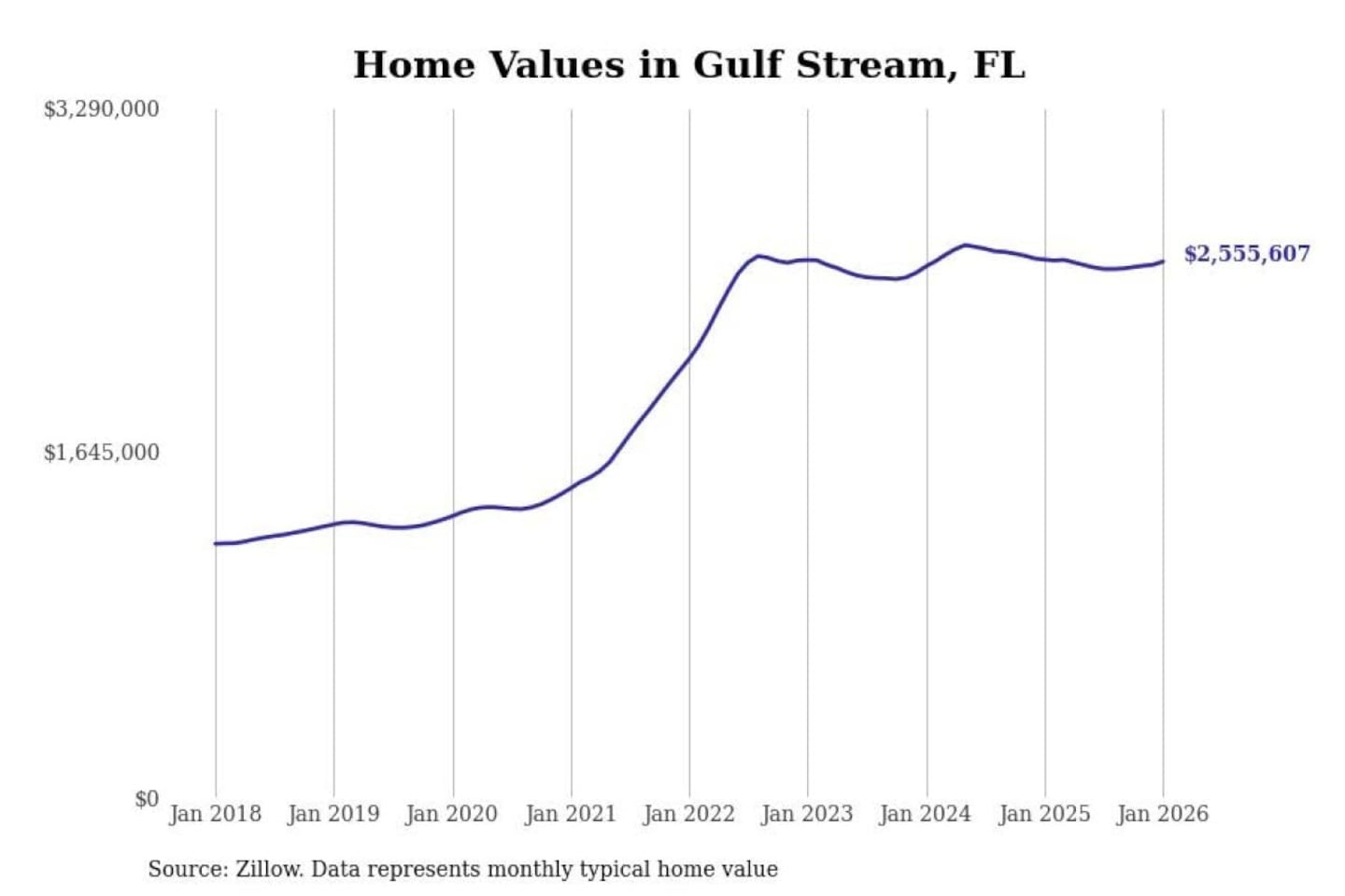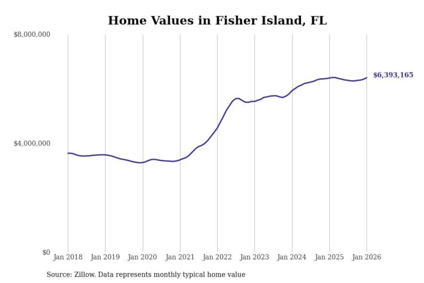 Stacker compiled a list of cities with the most expensive homes in Florida using data from Zillow. Cities are ranked by the Zillow Home Values Index for all homes as of January 2026. The charts in this story were created automatically using Matplotlib.